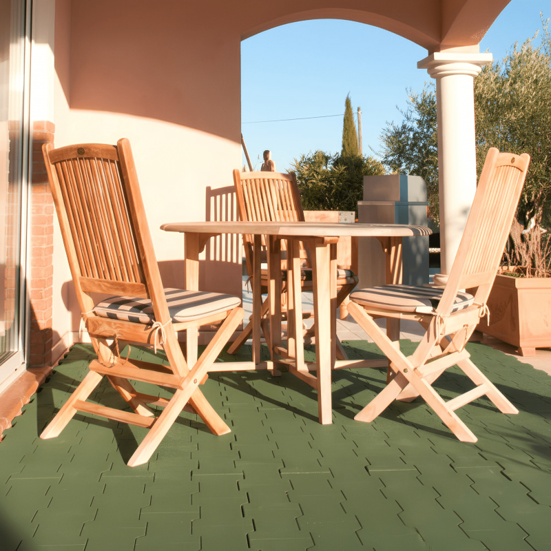 De par leurs formes, les dalles Dalamat se posent facilement grâce à leur système emboîtable (type puzzle) simple et rapide.