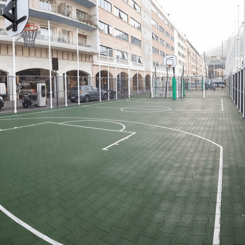 Les dalles amortissantes Hexdalle Dalamat sont idéales pour des sols extérieurs de plusieurs types :